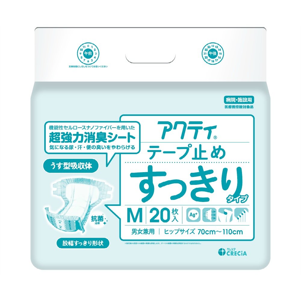 ●Ultra-strong deodorizing sheet with antibacterial properties made with functional cellulose nanofiber inhibits bacterial growth and eliminates the smell of urine, sweat, and stool. ●Improved urine pad insertion for easier insertion. ●Slim absorbent crotch width. ●Wide tape ensures secure fit over and over again. ●Absorbent polymer suppresses unpleasant odors. ●Fully breathable: breathable sheet with a cloth-like feel for a comfortable, sweat-free experience.